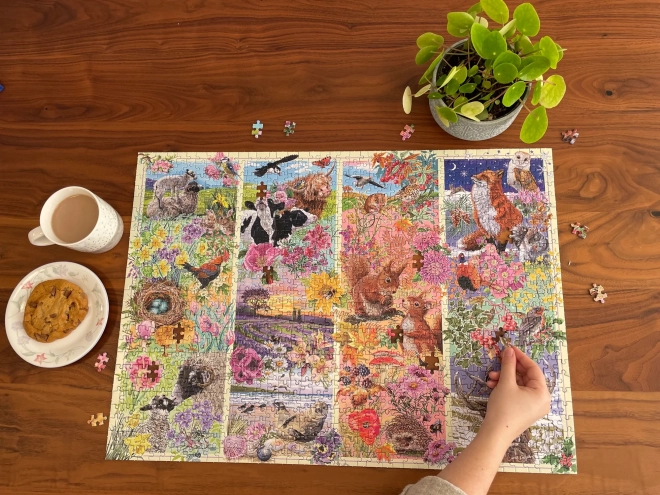Profitez d’un moment de détente avec un puzzle qui capture l’atmosphère du printemps, de l’été, de l’automne et de l’hiver en une seule image. Les puzzles GIBSONS sont réputés pour leur finition de qualité et leurs couleurs intenses qui soulignent les subtils détails du motif.