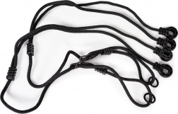La balançoire s'accroche facilement à l'aide d'anneaux métalliques sur les cordes suspendues, garantissant la stabilité et la solidité de l'ensemble.
