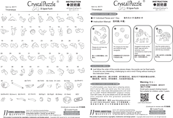 Le puzzle 3D Triceratops avec petit offre un divertissement original pour tous les âges. Chacune des 61 pièces est soigneusement conçue pour un assemblage aisé, aboutissant à un modèle détaillé et esthétiquement impressionnant. Sans aide, l’assemblage devient un véritable défi, mais les instructions garantissent une progression simple et correcte.