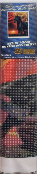 Contenu de l’emballage : toile avec image préimprimée, stylet pour l’application des strass, plateau pour verser les strass, cire adhésive, ensemble de strass colorés.