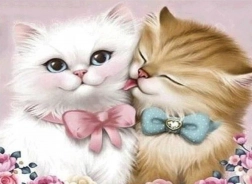 - Résultat : un tableau scintillant au motif romantique de chats amoureux.