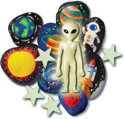 Le set 4M de peinture sur pierres est une manière idéale pour les enfants d’exprimer leur créativité. Ce kit fantastique contient tout ce dont votre enfant a besoin pour créer ses propres œuvres d’art sur le thème de l’espace, y compris des étoiles phosphorescentes et un extraterrestre qui brille dans le noir. Il permet aux enfants non seulement de créer, mais aussi d’inventer de petites histoires sur la vie dans l’espace.