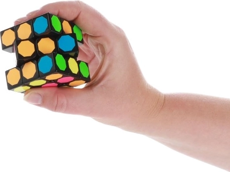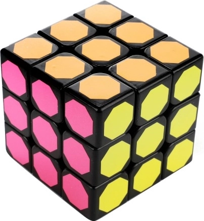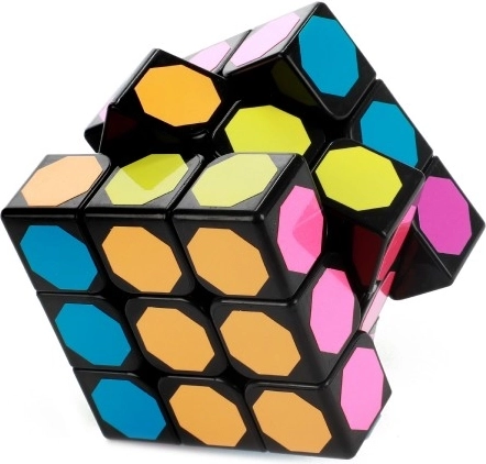 Ce cube casse-tête propose un design unique avec des autocollants hexagonaux multicolores sur une base en plastique noire. Parfait pour les exercices mentaux et le divertissement.