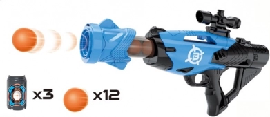 Pistolet à balles en mousse 42 cm avec tir rapide, 3 cibles et 12 balles. Divertissement sécurisé pour enfants et adultes, idéal pour entraîner la précision.