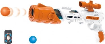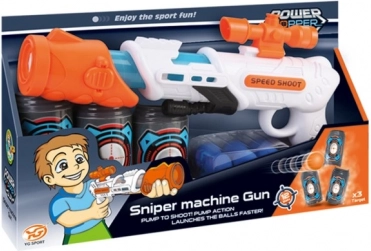 Insère la balle dans le canon, tire et pousse pour préparer. Le mécanisme manuel sans piles permet des tirs fluides et rapides.