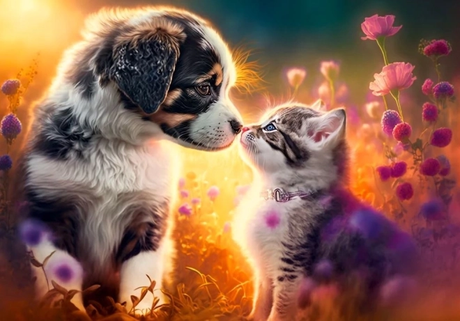 Découvrez la magie de la « nouvelle amitié » entre un chien et un chat. Ce puzzle de 500 pièces offre un défi plaisant pour enfants et adultes, et une fois terminé, il forme une image élégante de 47 × 33 cm.