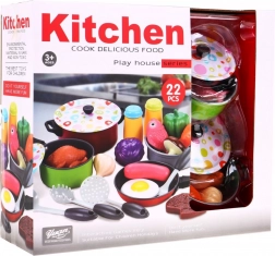Ensemble de cuisine coloré pour enfants à partir de 3 ans comprenant 22 pièces d'outils de cuisine réalistes. Superbe divertissement pour votre petit chef ou cuisinière, soutenant le développement de l'imagination et des compétences manuelles.