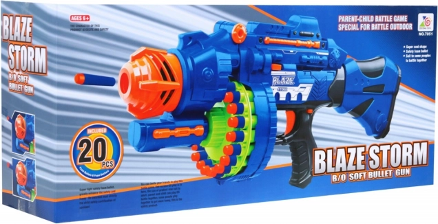 Le blaster BLAZE STORM offre un tir rapide et fluide grâce à son mécanisme électrique semi-automatique. Le barillet accueille jusqu’à 20 fléchettes et le pack en inclut directement 40 pièces, pour un plaisir qui dure. Grâce à sa poignée ergonomique et sa construction en plastique résistante, il est idéal pour les jeux en plein air comme pour les duels à la maison.
