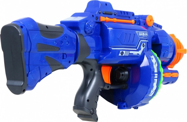 Le mécanisme électrique semi-automatique permet des tirs simples fluides ou un tir en rafale en maintenant la détente. Le barillet peut contenir jusqu’à 20 fléchettes pour une action prolongée sans rechargement.