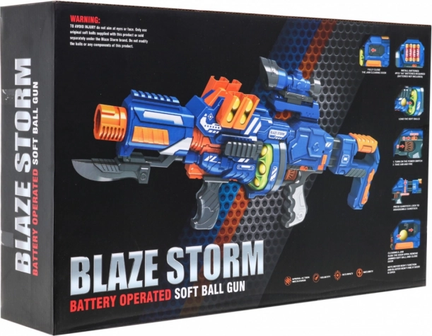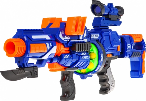 Vous cherchez une activité pleine d’action, au jardin comme en intérieur ? BLAZE STORM, dans un design moderne bleu‑orange, est léger, résistant et prêt pour de longs duels entre amis. Le moteur entièrement automatique à piles garantit des rafales de tir fluides, tandis que le barillet assure un rechargement rapide et un fonctionnement fiable.