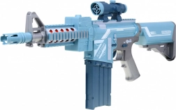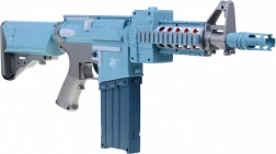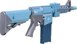 Le compresseur électrique alimenté par 5× piles AA (non incluses) assure un tir fluide et entièrement automatique – il suffit d’appuyer sur la gâchette, chaque pression déclenche un tir. Pour la sécurité des enfants, la gâchette peut être bloquée via l’interrupteur ON/OFF. Le long canon avec rouleaux de guidage stabilise le tir pour une meilleure précision.