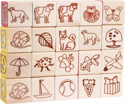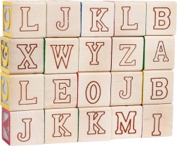 Le set contient 20 blocs en bois avec des lettres et des images, qui aident les enfants à apprendre l'alphabet et à développer leur créativité.