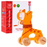 Les roues en bois et la ficelle simple permettent aux enfants de tirer facilement la girafe sur différentes surfaces.
