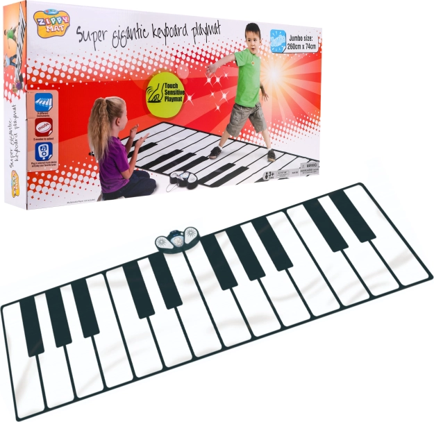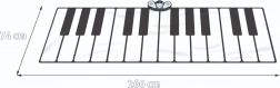 Le grand tapis musical permet aux enfants d'entrer dans le monde de la musique et du divertissement. Il contient deux haut-parleurs, un contrôle du volume et cinq modes de jeu différents : mode d'enregistrement, mode de lecture, mode démo, mode tonalité, et lecture. Le tapis peut être connecté à un appareil musical externe pour lire des morceaux préférés. Une fois connecté à un appareil externe, la fonction démo n'est pas disponible.