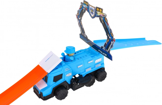 Le grand camion de police avec lanceur intégré propulse la voiture dans la course en une seconde. Préparez-vous à une action digne d’une véritable poursuite !