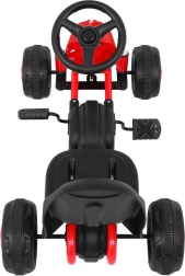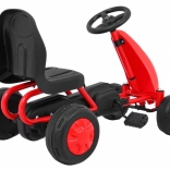 Kart à pédales léger et stable pour les tout-petits avec un entraînement par chaîne entièrement caréné, des roues en plastique avec bande de roulement en caoutchouc pour une conduite silencieuse et un pilotage sécurisé au volant. Idéal pour développer la motricité et s’amuser activement en plein air.