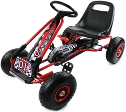 Kart à pédales ludique et robuste pour enfants dès 4 ans, avec pneus gonflables, frein à main agissant sur les deux roues arrière et siège réglable. Sa structure métallique solide, la rotation silencieuse grâce aux roulements de roues et le carter de chaîne fermé garantissent une conduite confortable et sûre en extérieur.