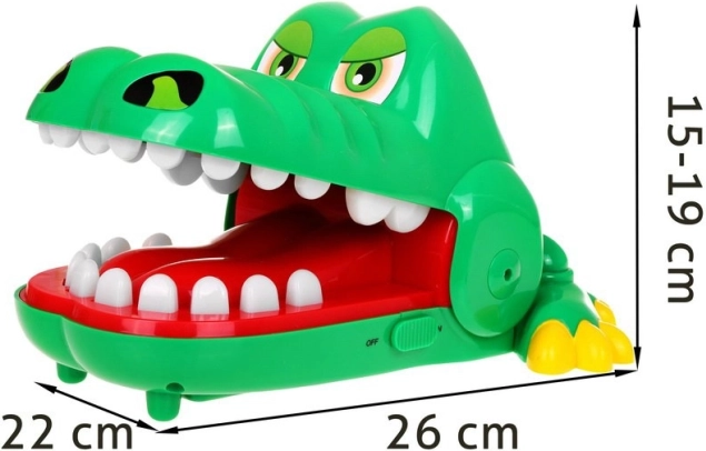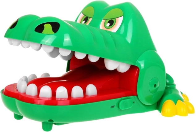 Appuyez sur les dents l’une après l’autre – si vous tombez sur la dent douloureuse, le crocodile referme sa gueule. Parfait pour des manches rapides pleines de rires.
