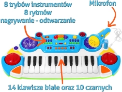 Le set musical bleu est un choix parfait pour les petits passionnés de musique. Il comprend un clavier avec deux octaves, un microphone et des lumières éclatantes, permettant aux enfants d’expérimenter les sons et les lumières en jouant.
