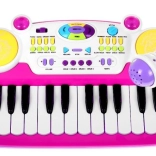 Cet ensemble rose clavier avec tambours et microphone est un cadeau idéal pour les enfants à partir de 3 ans. Il comprend deux octaves, des lumières et des sons, offrant aux enfants une expérience musicale et ludique inoubliable.