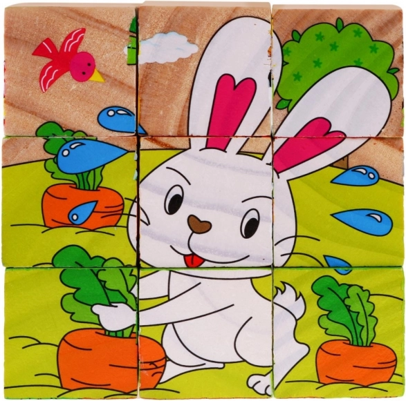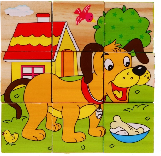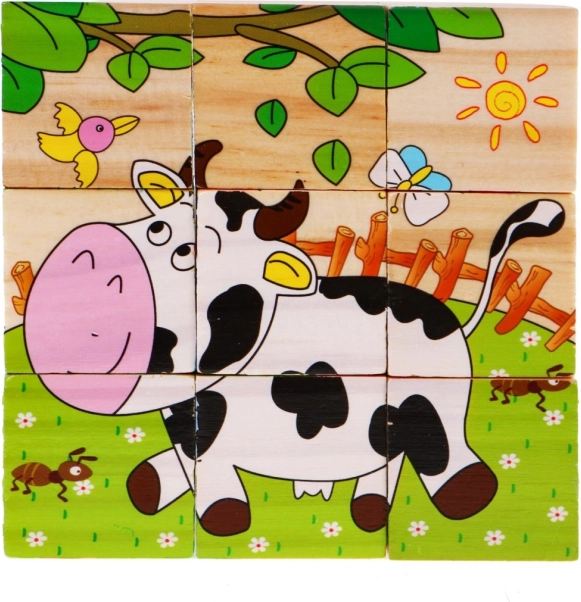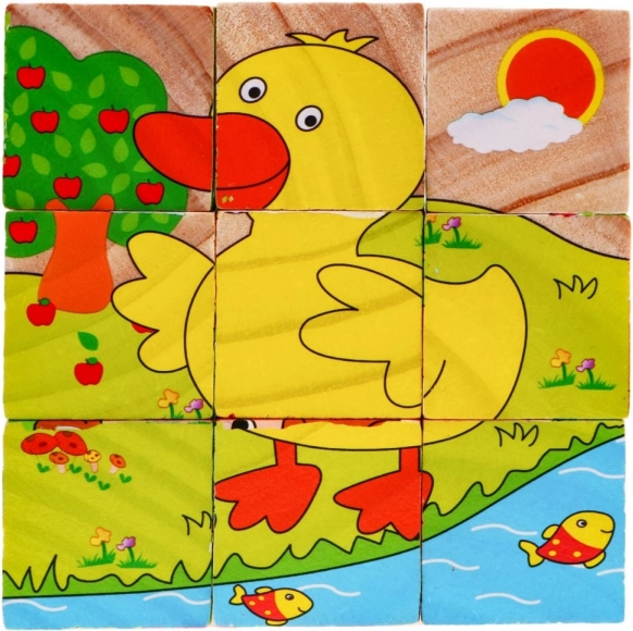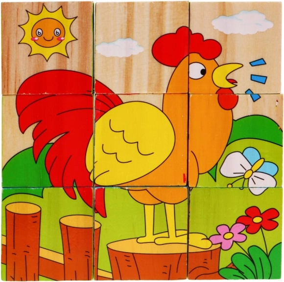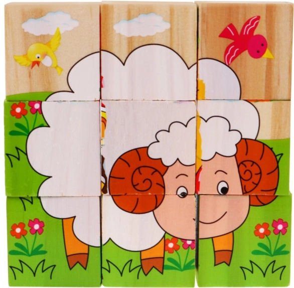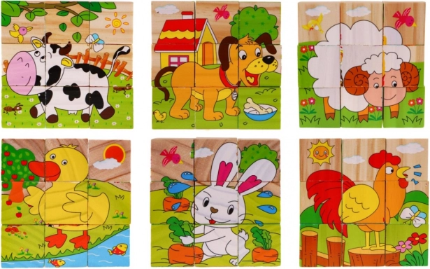 | Des blocs en bois avec des images d’animaux, une proposition pour les enfants à partir de 18 mois. Les blocs sont robustes et sûrs pour les enfants. L’ensemble comprend 9 blocs permettant de composer 6 images d’animaux : un chien, un mouton, un caneton, un poussin, un lapin et une vache. Jouer avec des blocs développe l’imagination et la créativité des enfants. Puzzle en bois pour enfants 18m+ Puzzle avec animaux 6 images