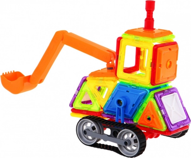 Les ensembles de construction magiques et magnétiques sont un choix idéal pour les enfants à partir de trois ans. Cet ensemble de 78 pièces est richement coloré et contient 29 pièces magnétiques qui peuvent être combinées avec des éléments en plastique. L'ensemble comprend des roues fonctionnelles et un bras de pelle, permettant de construire des modèles de machines de construction. Un manuel illustré clair inspire les enfants à construire de manière créative.