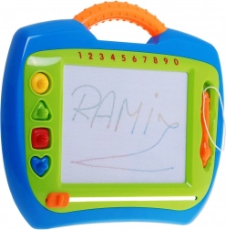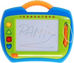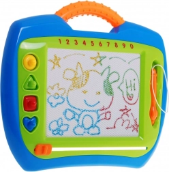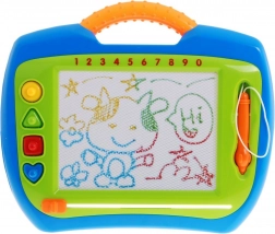 Ce tableau de dessin magnétique favorise la créativité, la motricité fine et la concentration. La zone de dessin comporte quatre secteurs colorés (jaune, bleu, rouge, vert), pour des images dynamiques tout en permettant aux enfants d’exercer naturellement la reconnaissance des couleurs et des formes. Le stylet est attaché à une cordelette pour ne pas être perdu et le curseur sous la surface efface tout d’un seul mouvement.