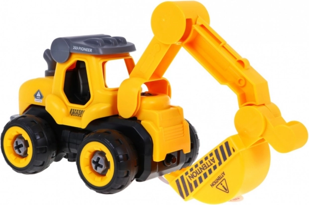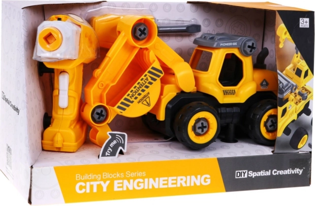 | | Jouet créatif pour petits ingénieurs. Le set se compose de 28 pièces. Assemblez la pelle à l’aide du tournevis manuel fourni ou de la perceuse électrique. La perceuse dispose de 2 embouts interchangeables, utilisables également comme tournevis manuel. Le module de perceuse, une fois inséré dans la pelle, la met en mouvement (marche avant et arrière). Un jouet à la fois éducatif et amusant. Un manuel de montage facile à comprendre guide l’enfant pas à pas vers la réussite. Le jouet possède des effets sonores (bruit de roulage et klaxon – pelle, bruit de perçage – perceuse). Le jouet est destiné aux enfants à partir de 3 ans. Le jouet est alimenté par des piles de type 3 x AG – pelle (incluses), 2 x AA – module de perçage (non incluses) et 2 x AA (non incluses) – perceuse. | |