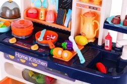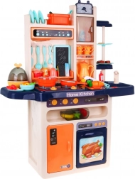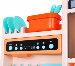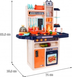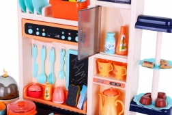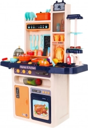 Cette élégante cuisine bleue transforme le jeu d’imitation en expérience réaliste. Les enfants adoreront l’eau qui coule du robinet fonctionnel, les brûleurs rétroéclairés avec effets de friture et de cuisson, ainsi qu’un brûleur qui produit une fine vapeur. S’y ajoutent un four et un réfrigérateur ouvrants, une hotte avec lumière et un panneau musical, une horloge à aiguilles mobiles et des étagères pratiques pour la vaisselle.