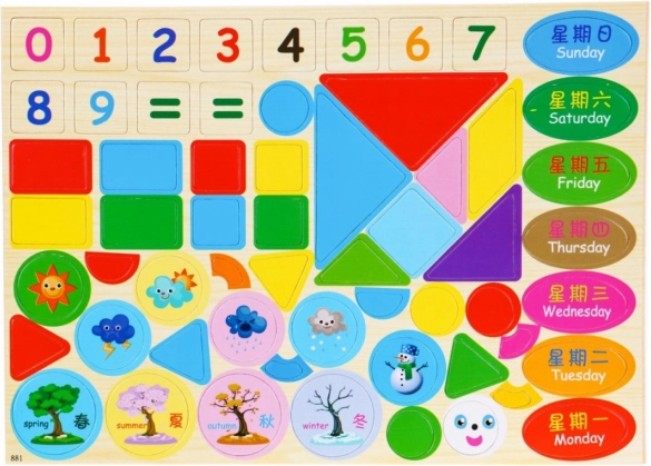 - Apprentissage polyvalent : chiffres, arithmétique, temps, formes, jours, saisons et météo.