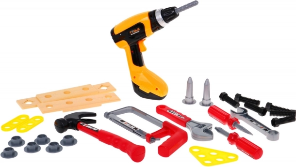 Un set complet pour petits bricoleurs dès 3 ans offrant 26 pièces pour un jeu de réparation réaliste. Inclus une perceuse-visseuse interactive à piles, des clés, un marteau, des tournevis, une scie, des vis et des éléments de fixation. Grâce au design fidèle et aux sons lors du vissage, il développe la motricité fine, la créativité et les compétences techniques des enfants.