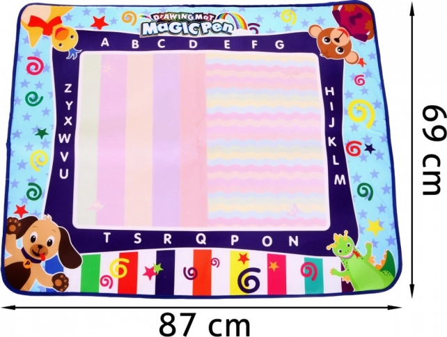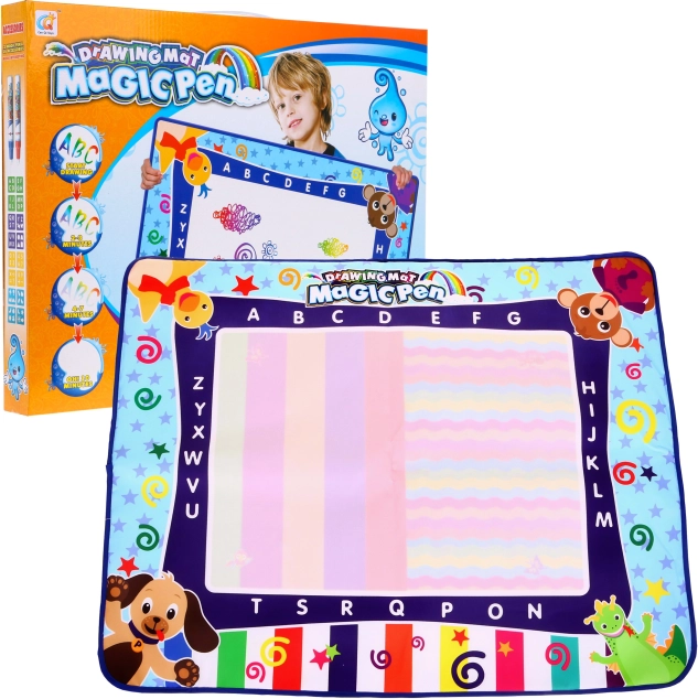 Ce tapis de dessin à l'eau est fabriqué à partir de matériaux confortables, facilement pliables. Contrairement au papier, il est réutilisable plusieurs fois. Dessinez avec le stylo magique, et après 10 minutes, vous pouvez recommencer à créer. Le tapis est complété par des pochoirs avec différents éléments que l'enfant peut tracer, stimulant ainsi son développement.
