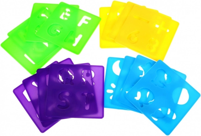Comprend 16 pochoirs avec des lettres et des chiffres pour développer la créativité.