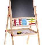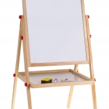 Ce tableau en bois stable associe dessin créatif et apprentissage malin. La face blanche est magnétique pour écrire au feutre effaçable et utiliser des aimants, la face noire convient au dessin classique à la craie. Grâce à la hauteur réglable, il s’adapte facilement aux enfants d’âges différents et les accompagne dans le temps.