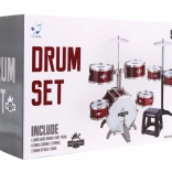 - grosse caisse avec pédale de frappe, - deux toms moyens, - 4 petits tambours, - 2 baguettes, - tabouret. | |||