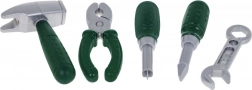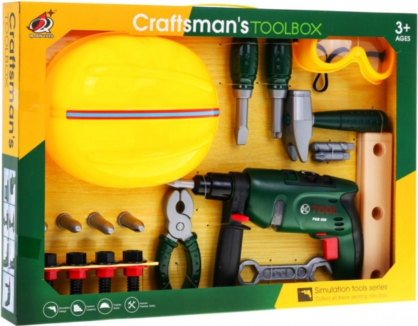 | - casque env. 25,5 cm x 19 cm x 11 cm, - lunettes env. 14 cm x 5 cm x 7 cm, - tournevis env. 13 cm x 3,5 cm, - marteau env. 13 cm x 8,8 cm, - clé env. 13 cm x 4 cm, - pince env. 14 cm x 6 cm, - emballage env. 51 cm x 36 cm x 6,5 cm. |