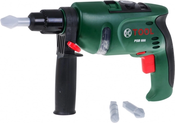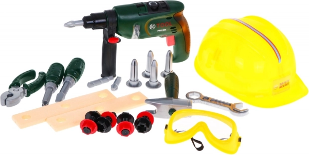 | | Le kit de bricolage avec perceuse, lunettes, casque et outils convient aux enfants à partir de 3 ans. Le jouet influence positivement le développement de la pensée logique, stimule la créativité et favorise la coordination œil-main. Le tournevis est alimenté par 2 piles AA 1,5 V (non incluses). | Contenu du set |