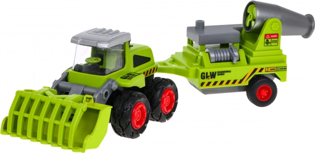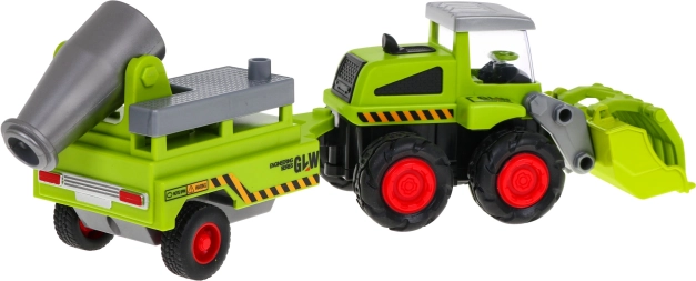 Chargeur agricole en métal avec remorque est le jouet idéal pour les petits agriculteurs de plus de trois ans. Ce jouet comprend un godet métallique mobile, une remorque amovible avec pulvérisateur, des roues en caoutchouc et une transmission sur l’essieu arrière.