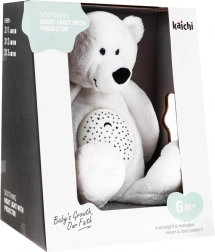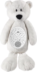 Cet ourson interactif crée une atmosphère apaisante pour faciliter l’endormissement. Le projecteur logé dans son ventre affiche au plafond et sur les murs un doux ciel étoilé en rouge, bleu, vert et violet, qui capte l’attention de l’enfant tout en l’apaisant. Son pelucheux au toucher agréable est sûr pour les nourrissons et invite aux câlins.