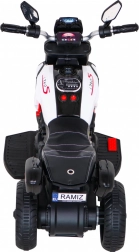 Grâce aux phares avant et au panneau multimédia (AUX, USB, lecteur SD), les enfants profitent de beaucoup de divertissement en écoutant leurs chansons préférées. La selle confortable en éco‑cuir et les roues avec bande de roulement en caoutchouc garantissent une conduite agréable et silencieuse.