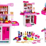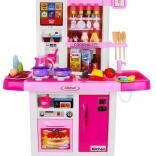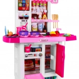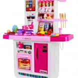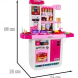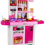 Cette cuisine spacieuse offre aux enfants une expérience de cuisine réaliste : deux brûleurs avec lumières et sons de friture et de cuisson, évier avec robinet à pompe d’où l’eau coule réellement, ainsi que four et réfrigérateur ouvrants. Le panneau tactile propose des sons d’animaux, des mélodies, l’apprentissage des nombres 1–10 en anglais, le réglage du volume, des sonneries de téléphone et d’autres effets. Grâce à ses couleurs vives et à sa fabrication de qualité, cette cuisine est idéale pour un jeu quotidien.