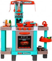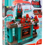 La cuisine comprend de nombreux accessoires, dont des casseroles, des poêles, des assiettes et diverses imitations d’aliments, permettant aux enfants de créer leurs propres histoires et situations.