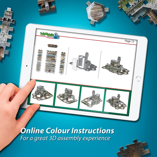 Réplique fidèle du château avec une multitude de détails architecturaux dans les tours, remparts et la cour intérieure – une superbe décoration et une pièce de collection une fois assemblée.