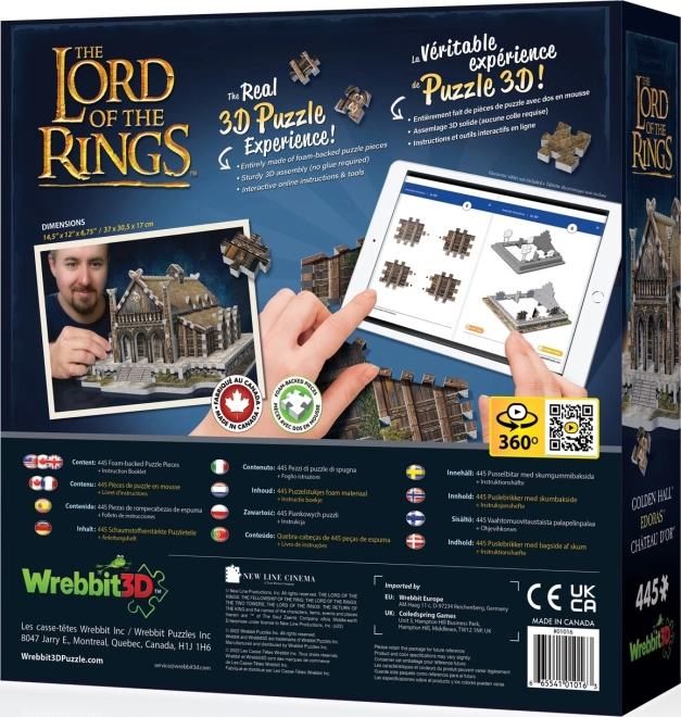 Créez votre propre modèle 3D de la Salle Dorée du Seigneur des Anneaux avec ce puzzle WREBBIT détaillé et robuste offrant un défi unique et amusant. Parfait pour tous les âges qui aiment construire et admirer le monde de la fantaisie.