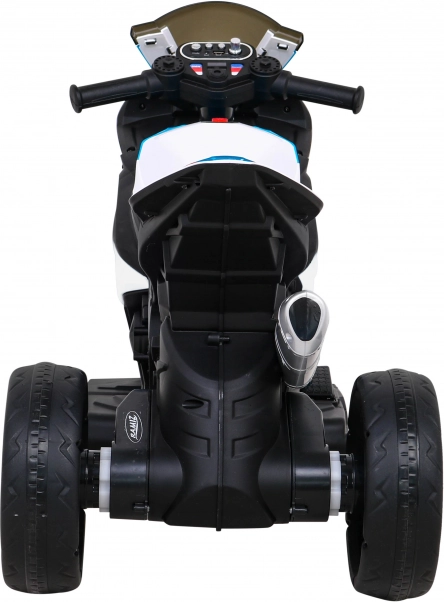 Une moto pour enfants élégante à batterie inspirée du modèle BMW HP4 offre une conduite sûre sur 3 roues, des feux LED efficaces et du divertissement avec MP3/USB/AUX. Grâce à la selle en éco‑cuir et à deux vitesses, elle garantit confort et excellentes sensations de conduite pour les petits pilotes.