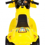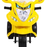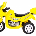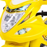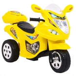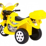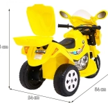 La propulsion est assurée par un moteur de 18 W alimenté par une batterie 6 V / 4,5 Ah. Les trois roues stables avec bande de roulement en caoutchouc (19 × 8 cm) garantissent une bonne adhérence et un confort de conduite sur surface lisse. Une charge jusqu’à 25 kg et une garde au sol de 7 cm font de cette moto un compagnon pratique pour la cour comme pour le salon.