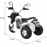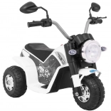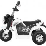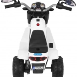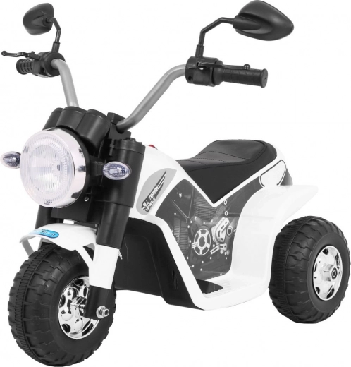 La moto électrique pour enfants MiniBike, dans une élégante couleur blanche, offre aux enfants un divertissement sûr et leurs premières expériences de conduite. Grâce à ses trois roues, elle est stable et dispose de phares LED avant, d’un son de démarrage du moteur et de mélodies sur le volant. Elle est propulsée par un moteur RS380 6 V avec une batterie 6 V / 4,5 Ah, et le confort est assuré par une sellette en similicuir noir.
