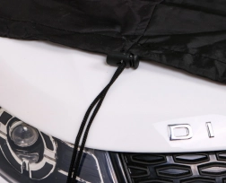 Grâce à son mécanisme de serrage, la housse s'adapte facilement à la forme de la voiture et assure une fixation sécurisée.