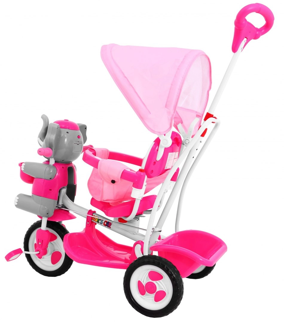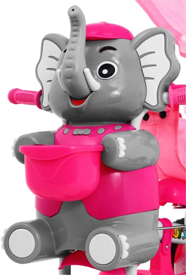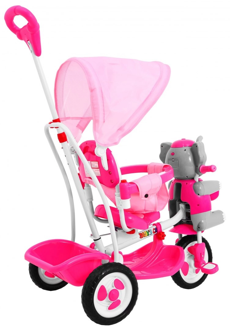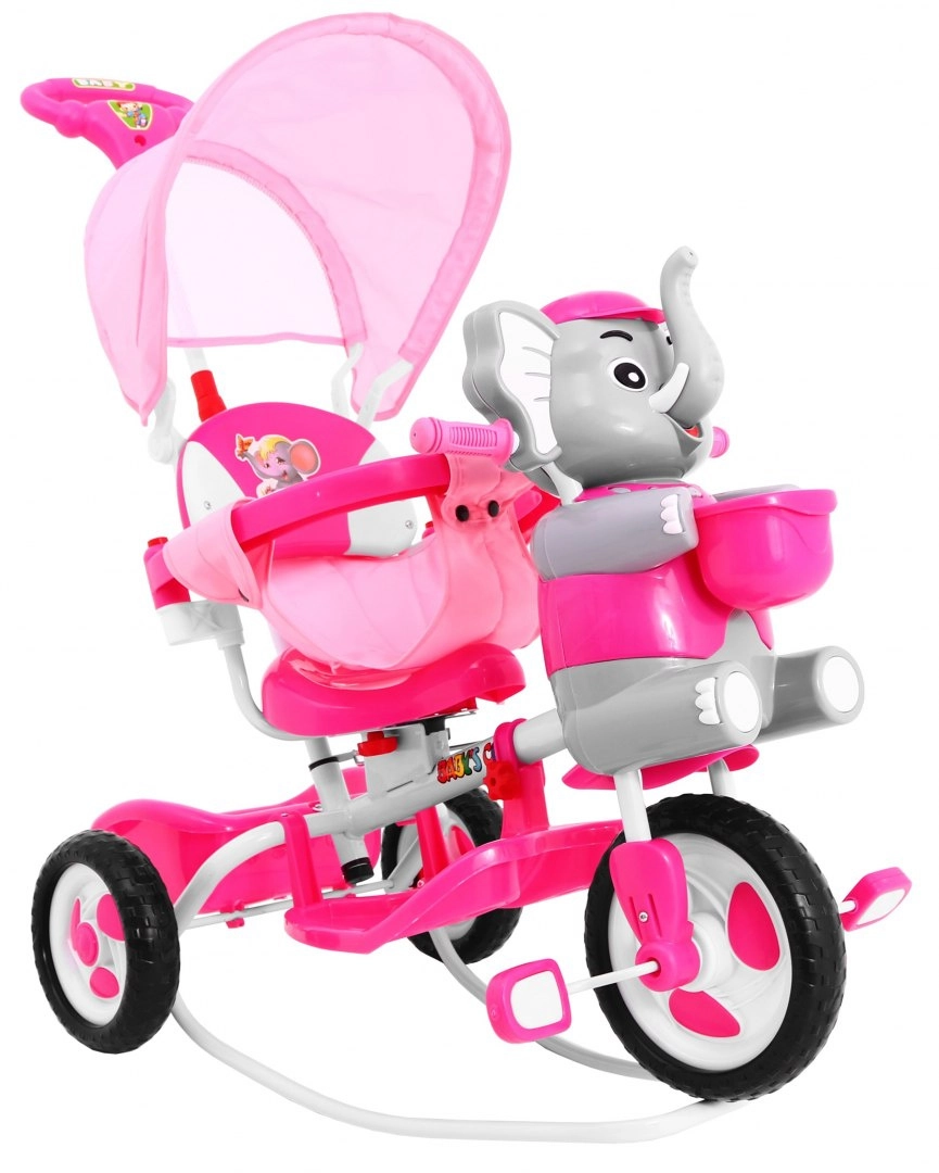 Adorable tricycle pour enfant avec motif éléphant et riche équipement pour une conduite sûre et confortable de 1 à 5,5 ans. Il offre un contrôle parental relié au guidon, un pare-soleil réglable, une barre de sécurité et de larges roues en mousse pour une conduite fluide. Les enfants apprécieront les effets sonores sur la tête de l’éléphanteau ainsi que les paniers et rangements pratiques pour les petits objets.
