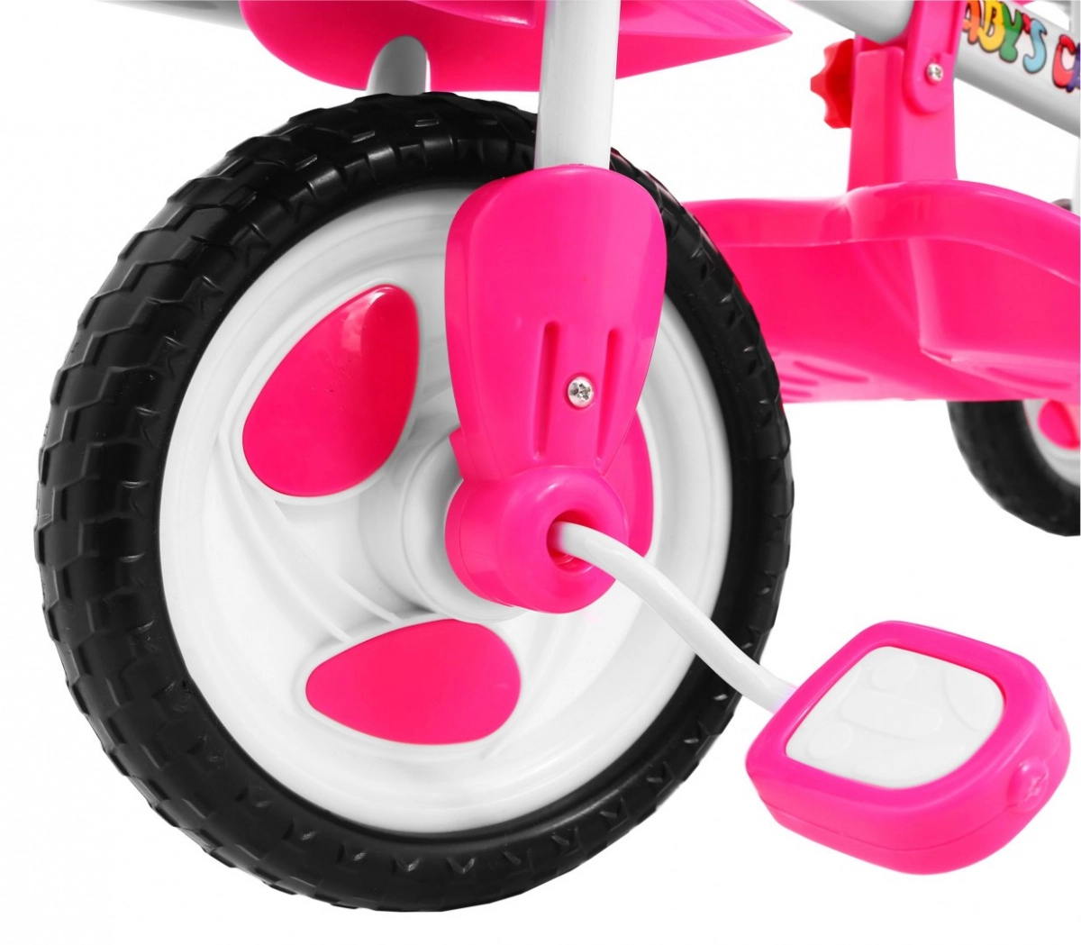La poignée réglable, fermement reliée au guidon, vous permet de guider facilement le tricycle et de corriger les manœuvres de l’enfant.